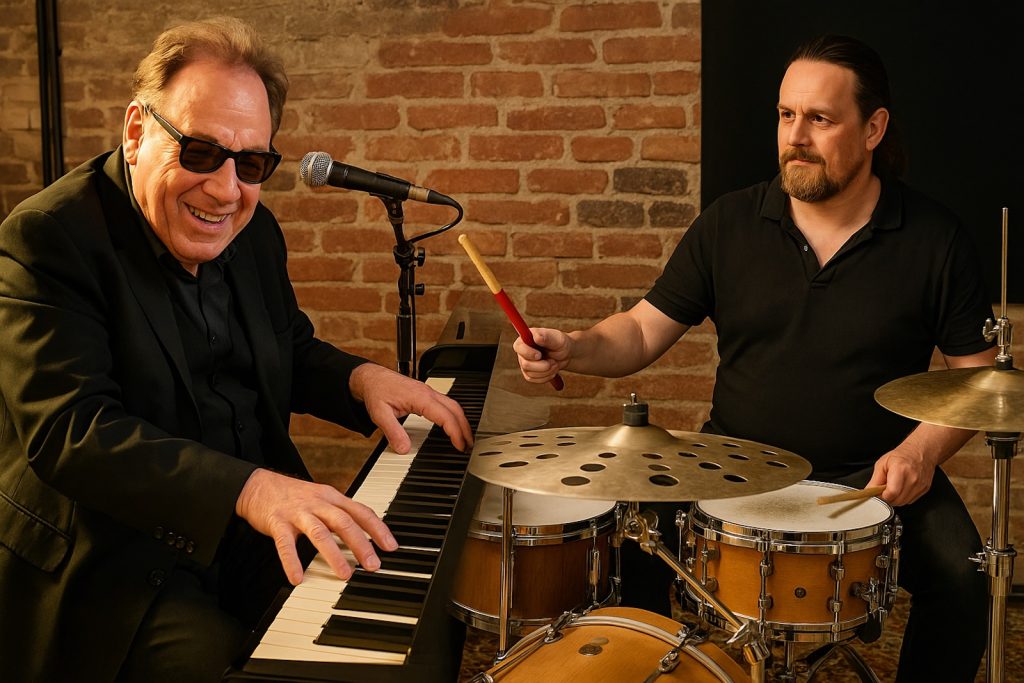 BoogieMan & Drums, ein Power-Duo der Extraklasse, das wieder einmal verdeutlicht, dass Gemeinsamkeit mehr als die Summe der Einzelteile bedeuten kann. Wobei die „Einzelteile“ des Duos in diesem Falle der häufig auch als Solist agierende Thomas Nowak am Keyboard sowie der Drummer, Michael Franzen, sind. Letzterer ist auch als Saxophonist ein gefragter Musiker der Szene, unterstrich hier in der Zusammensetzung mit Thomas „BoogieMan“ Nowak aber sein Können am Schlagwerk. Und so hämmerten die beiden Vollblutmusiker sowohl am Schlagwerk als auch an den Tasten, was das Zeug hielt. Ob langsam oder schnell, in jedem Fall legte sich die Stimme des BoogieMans gekonnt über die Noten und verdeutlichte eindrucksvoll, wie sich die musikalische Bandbreite durch den Gesang erweitern läßt.