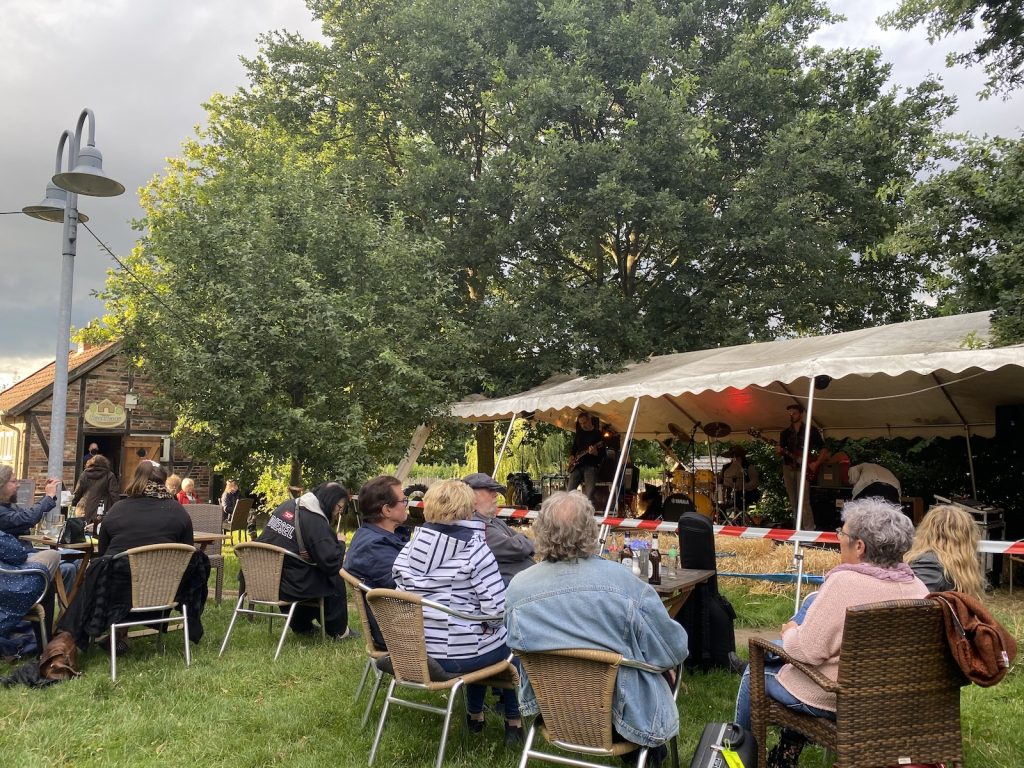 „What a feeling“, kann man spontan nur dazu sagen, was Sonne, Mucke und schönes Ambiente. vermitteln. Das war es, was die aufgrund der Pandemie auf 100 (!!) limitierten Gäste erleben konnten. Und die gute Laune war allseits spürbar.