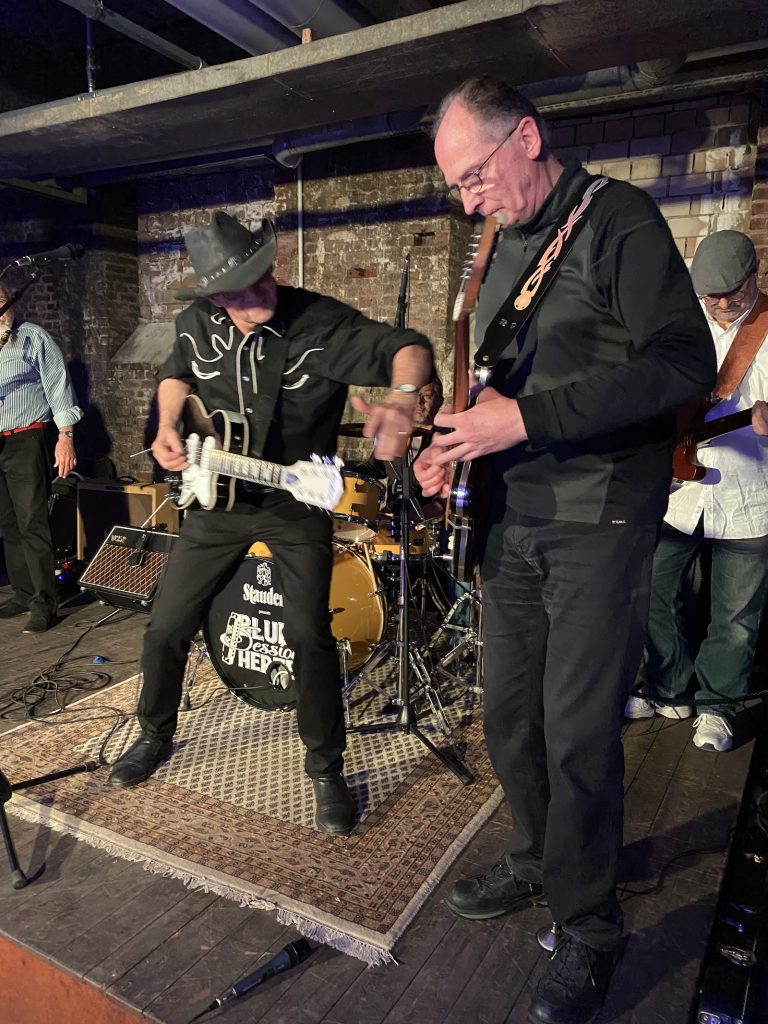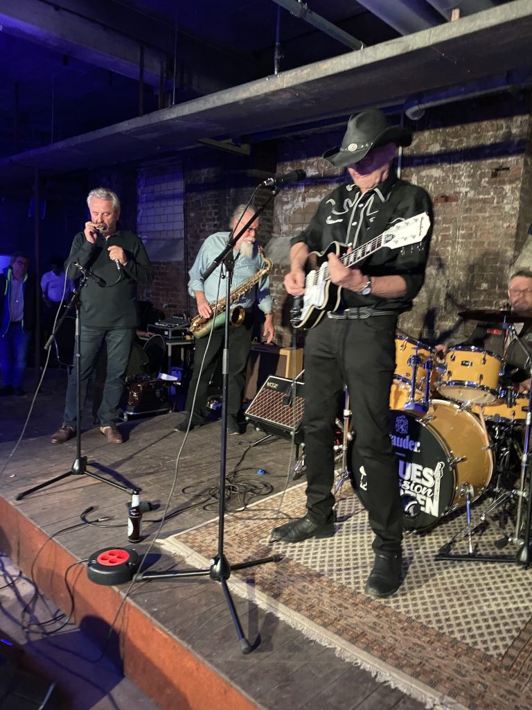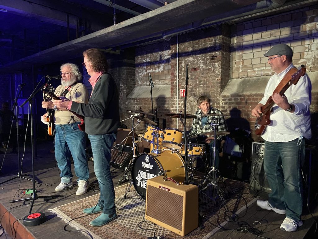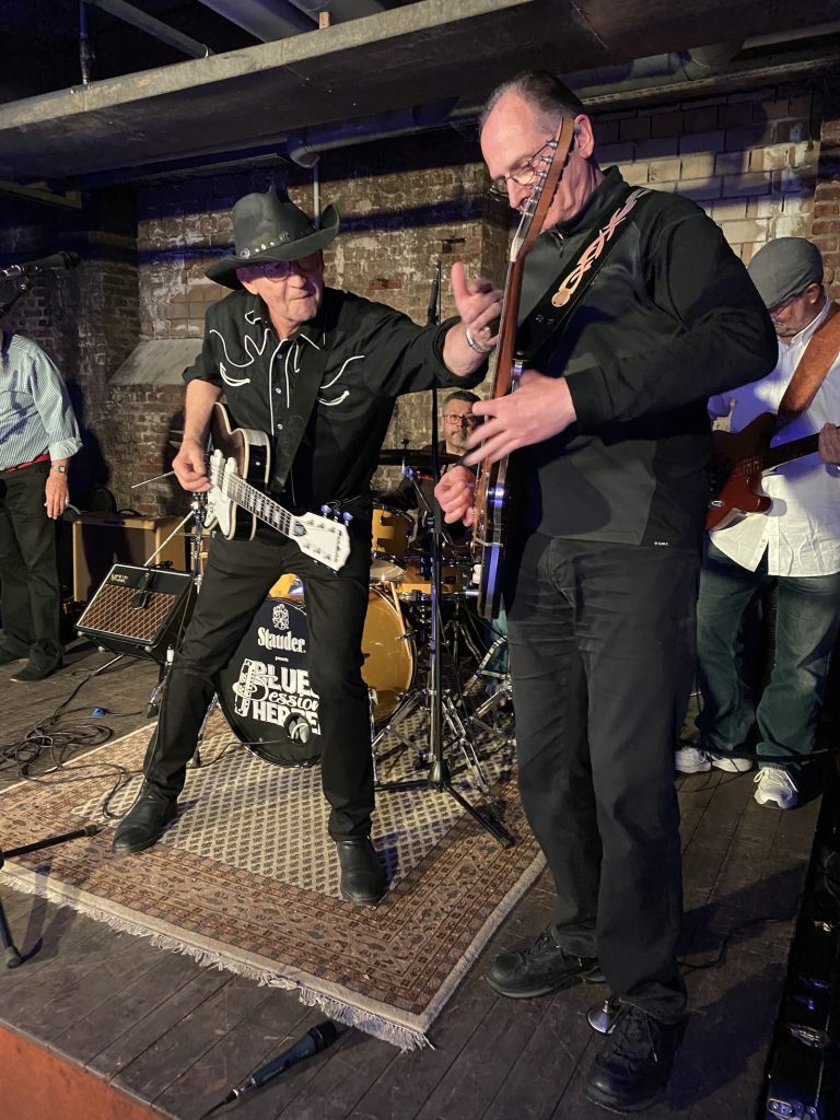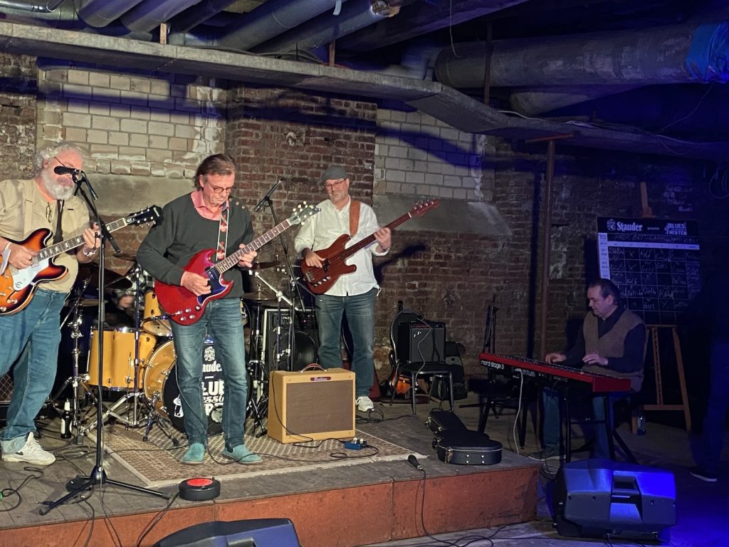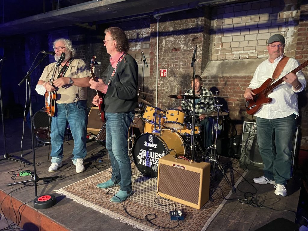 Das Quartett vom Niederrhein legte einen sehr dynamischen Auftritt hin, der maßgeblich vom Meister an der Slideguitar, d.h. Prof. Bottleneck, sowie dem Meister am kleinen Gebläse, genauer gesagt der Bluesharp, Frank Born getragen wurde.