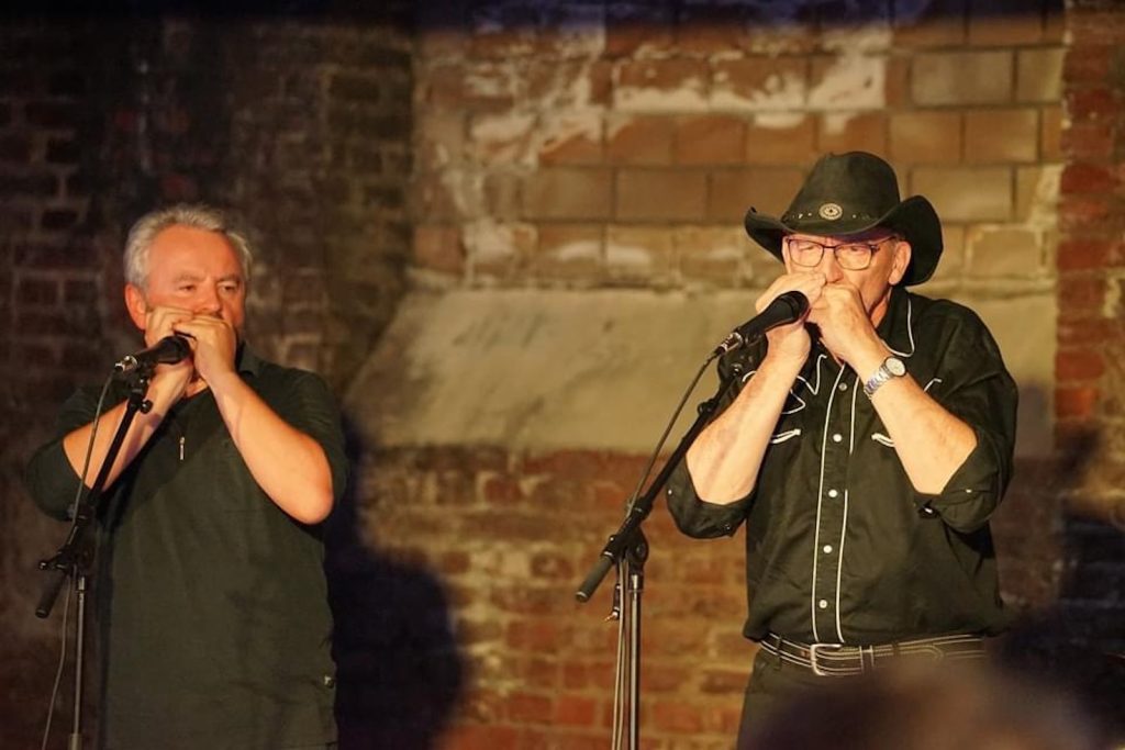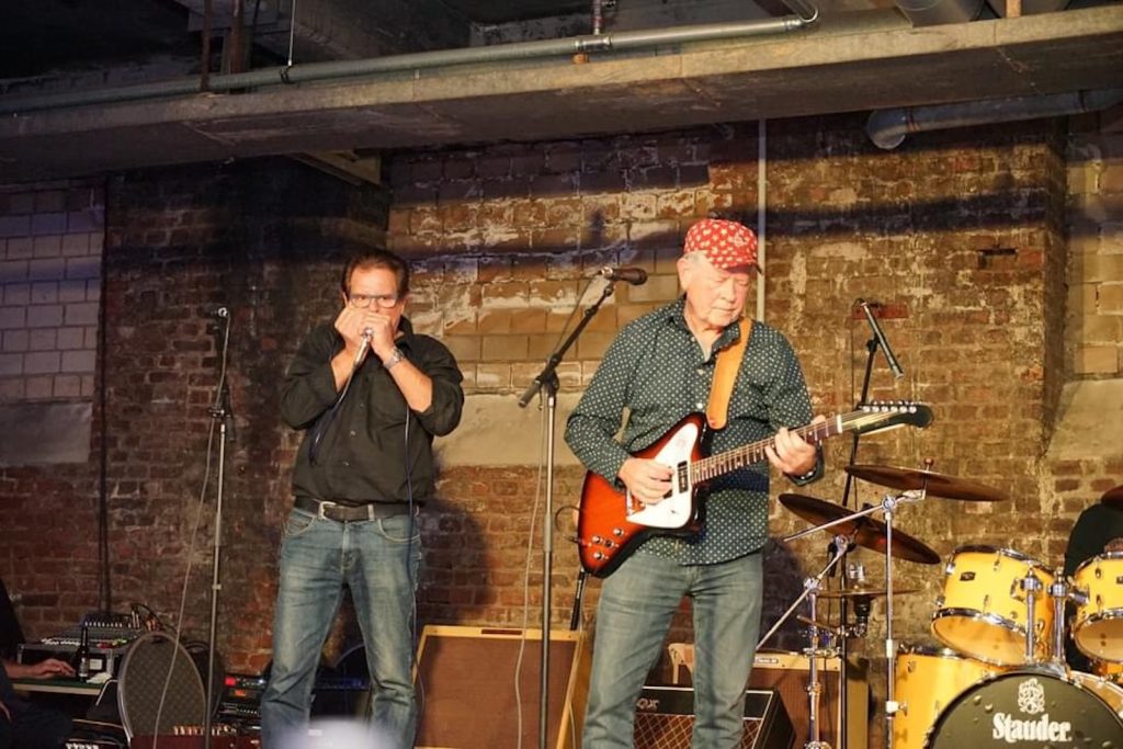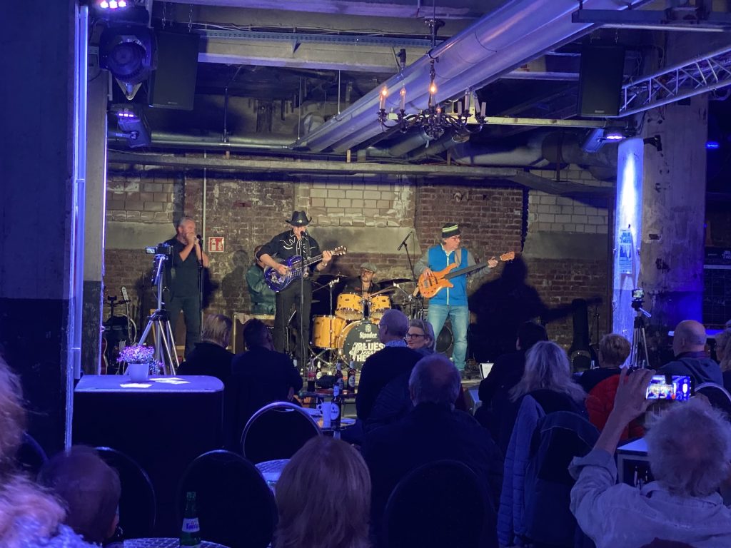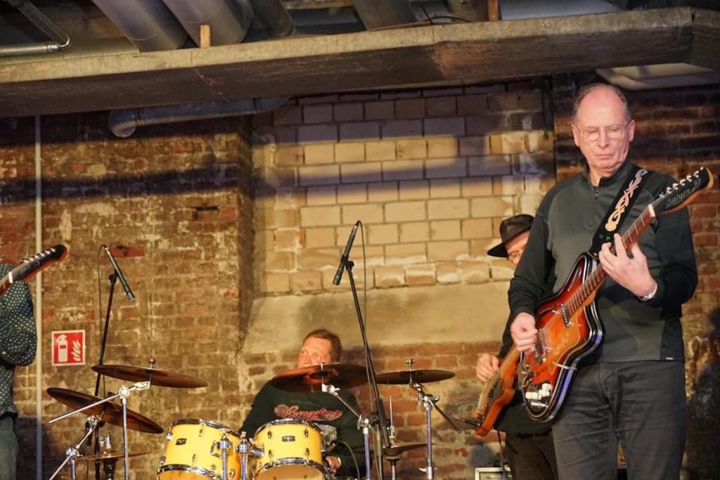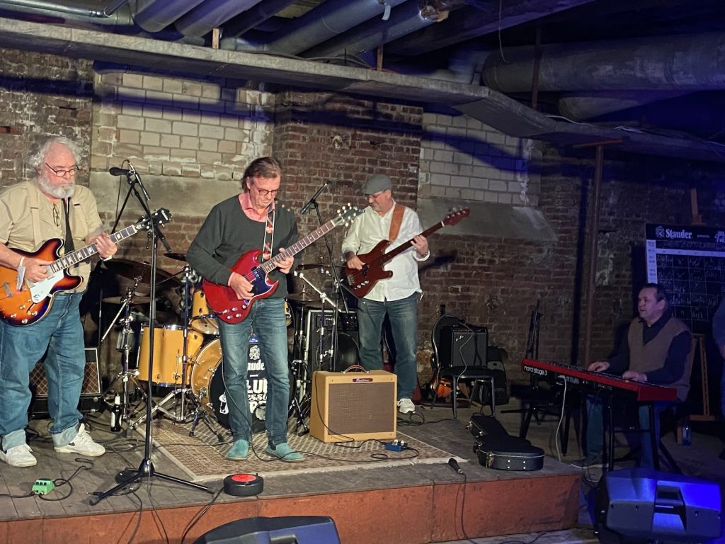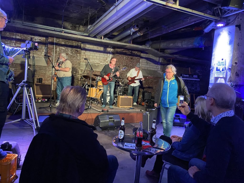 Das Quartett vom Niederrhein legte einen sehr dynamischen Auftritt hin, der maßgeblich vom Meister an der Slideguitar, d.h. Prof. Bottleneck, sowie dem Meister am kleinen Gebläse, genauer gesagt der Bluesharp, Frank Born getragen wurde.