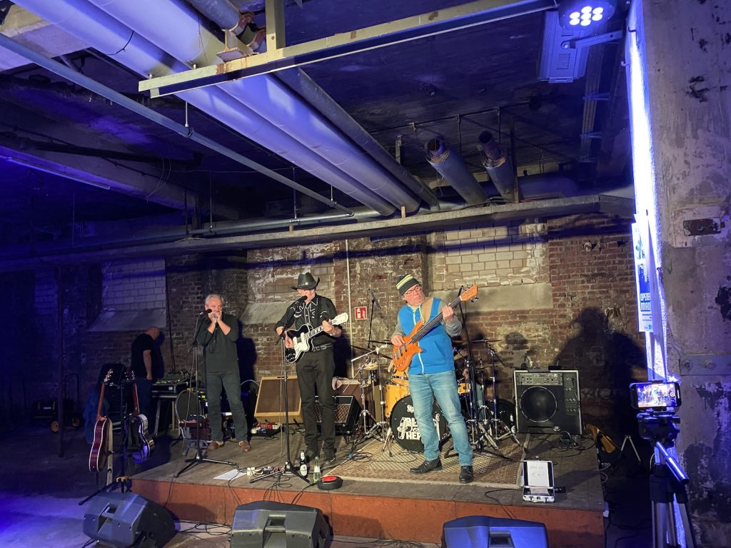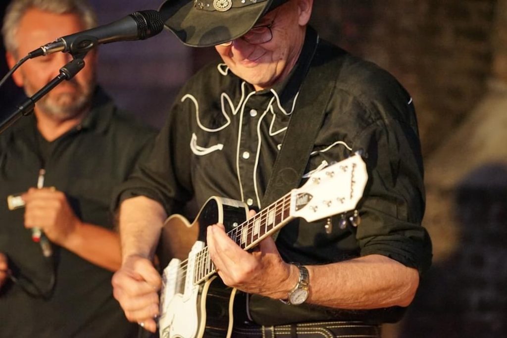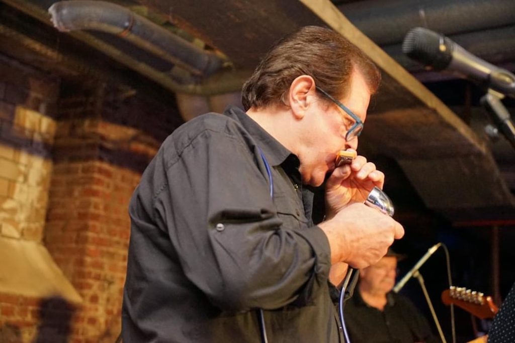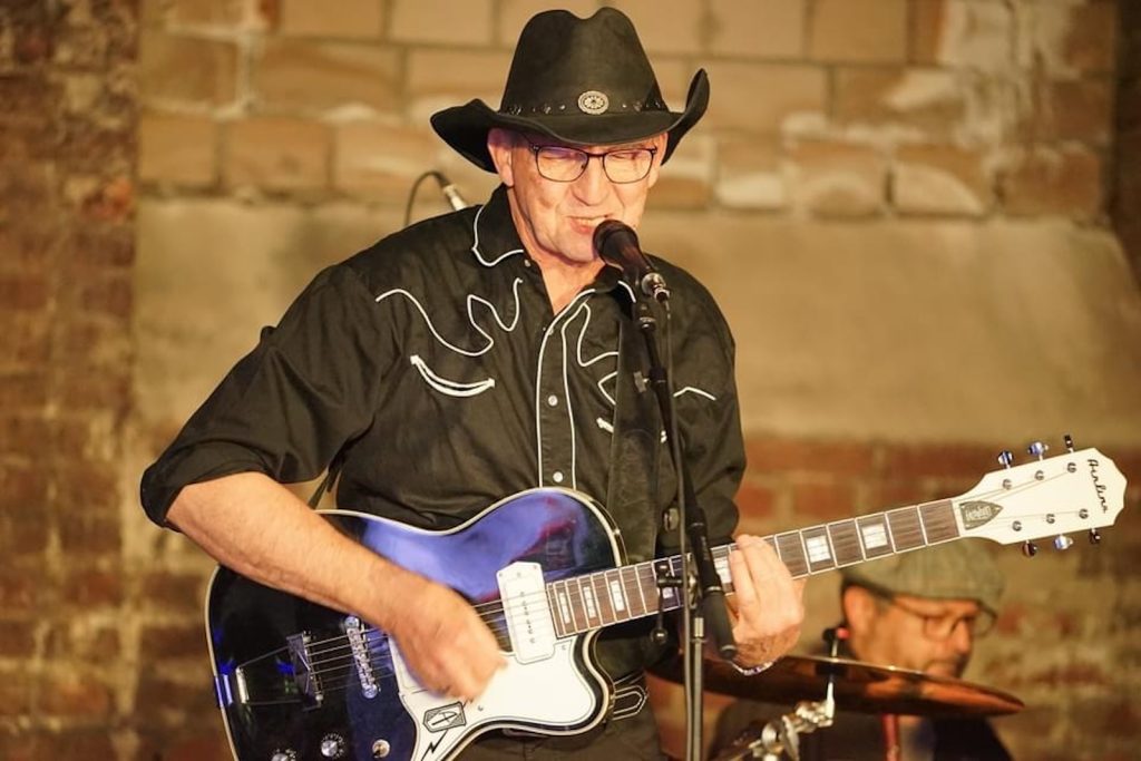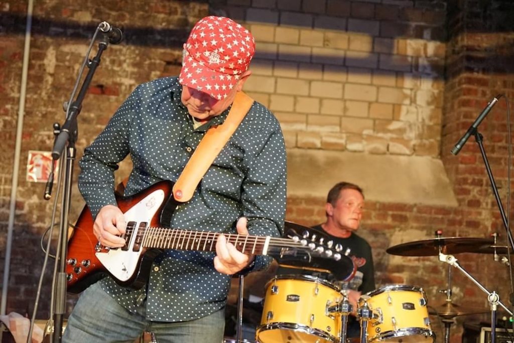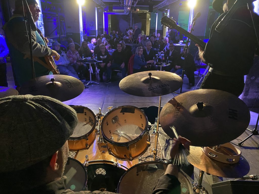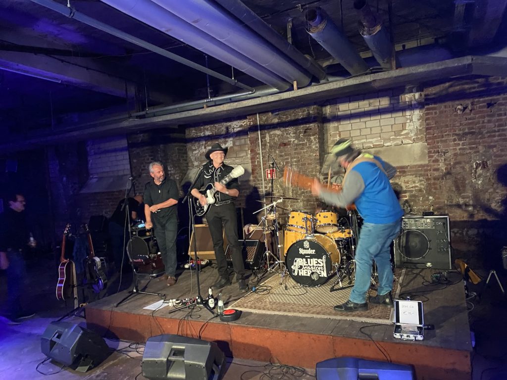 Das Quartett vom Niederrhein legte einen sehr dynamischen Auftritt hin, der maßgeblich vom Meister an der Slideguitar, d.h. Prof. Bottleneck, sowie dem Meister am kleinen Gebläse, genauer gesagt der Bluesharp, Frank Born getragen wurde.