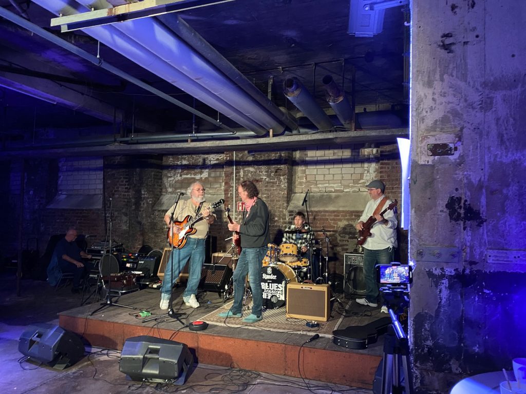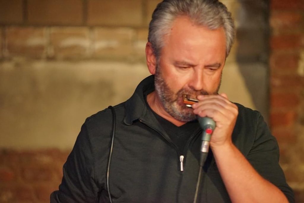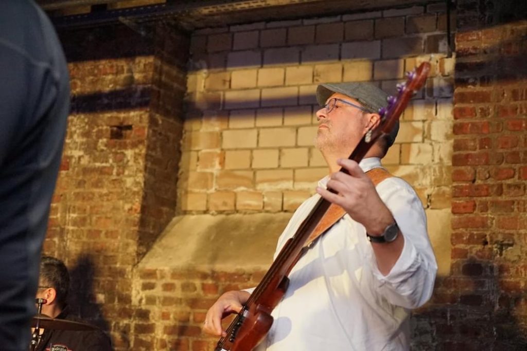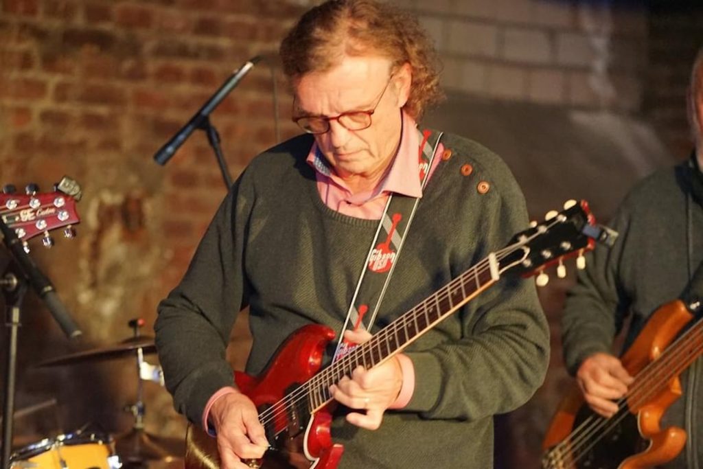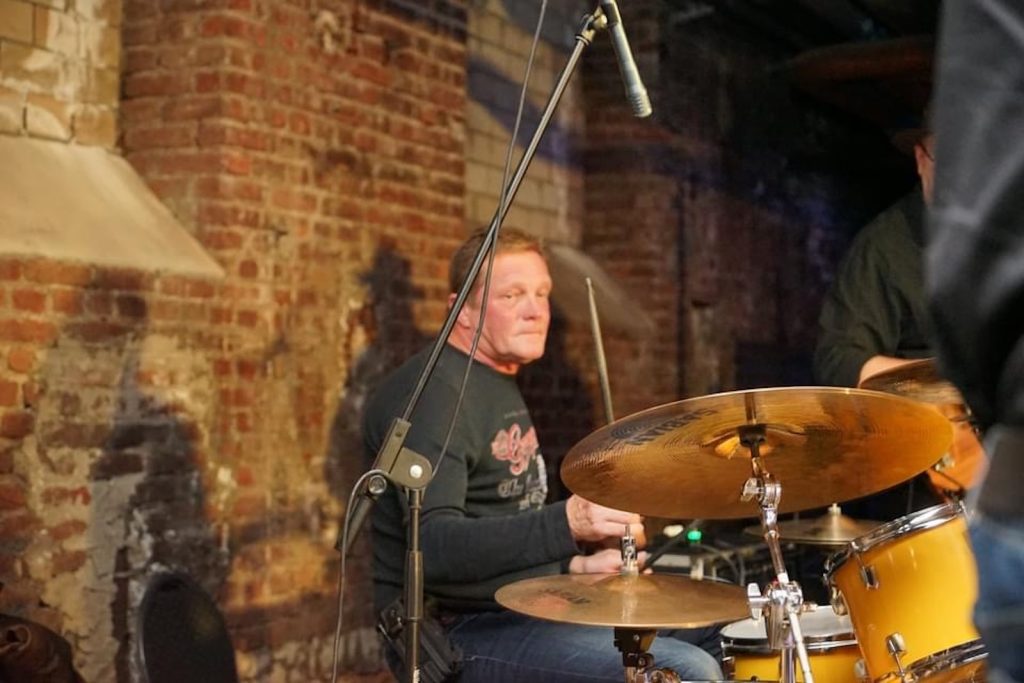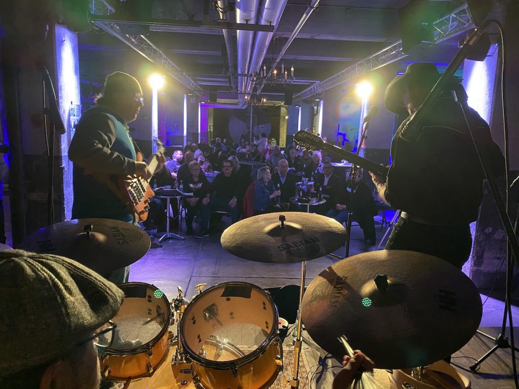 Das Quartett vom Niederrhein legte einen sehr dynamischen Auftritt hin, der maßgeblich vom Meister an der Slideguitar, d.h. Prof. Bottleneck, sowie dem Meister am kleinen Gebläse, genauer gesagt der Bluesharp, Frank Born getragen wurde.