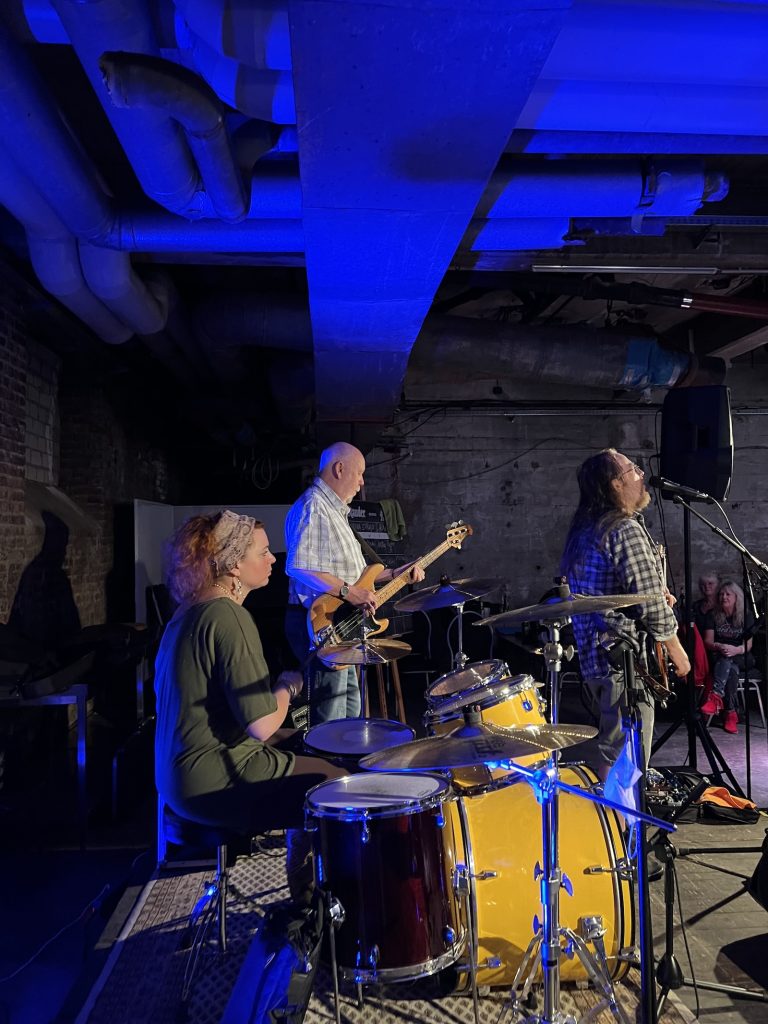 „September“ von Earth Wind and Fire kommt unwillkürlich in den Sinn, wenn man den Auftritt von Annina Struve & Hugoonion Revue passieren läßt. Nicht nur, weil es ebenfalls ein September-Auftritt war, sondern vorrangig wegen der spürbaren Energie, die das Trio aus dem Sauerland im Tief-Keller der ehemaligen Zeche Schlägel & Eisen verbreitet hatte.